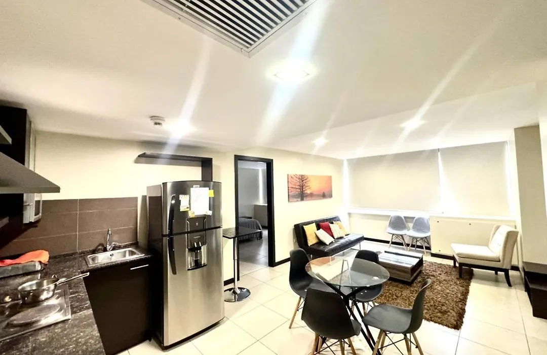 A refrigerator and a dishwasher are provided at a fully equipped kitchen. Love Apartment is within a few blocks of Metrovia - Juan Pendola bus stop.